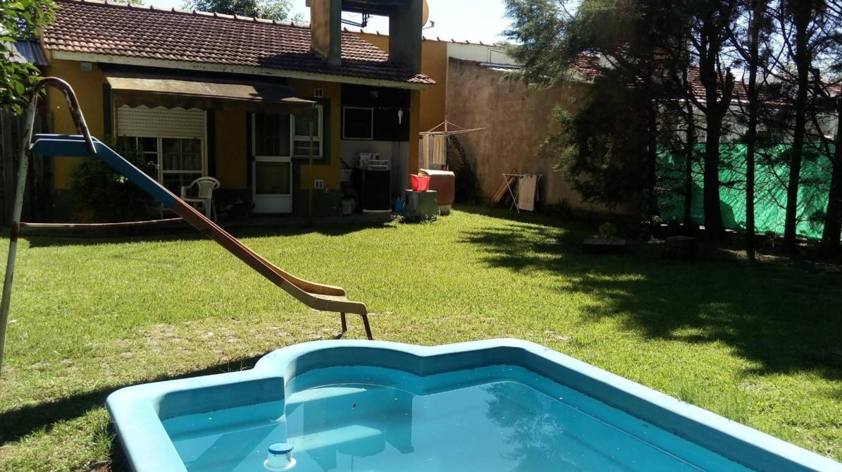 Excelente propiedad ubicada en Barrio privado Parque Jorge Newbery construida sobre un lote de 300m", posee cochera cubierta, parque con pileta y parrilla.