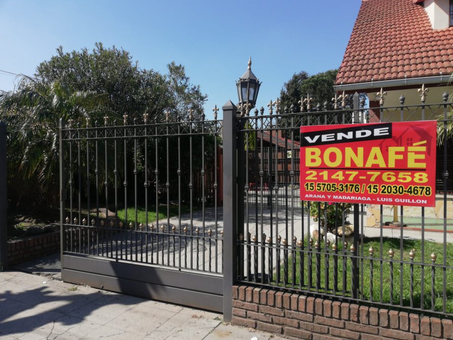 Frente de rejas con portón automático para entrada vehicular.
