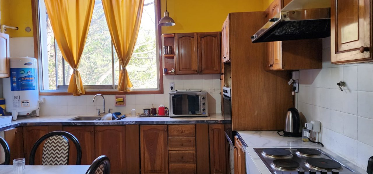 En planta alta: vivienda con espacios grandes y luminosos, con posibilidad de uso profesional, dos dormitorios, uno de ellos de 16m² y otro de 14m², living con ventanal al frente de 28m², cocina comedor de 17m², baño completo. Pileta a recuperar.